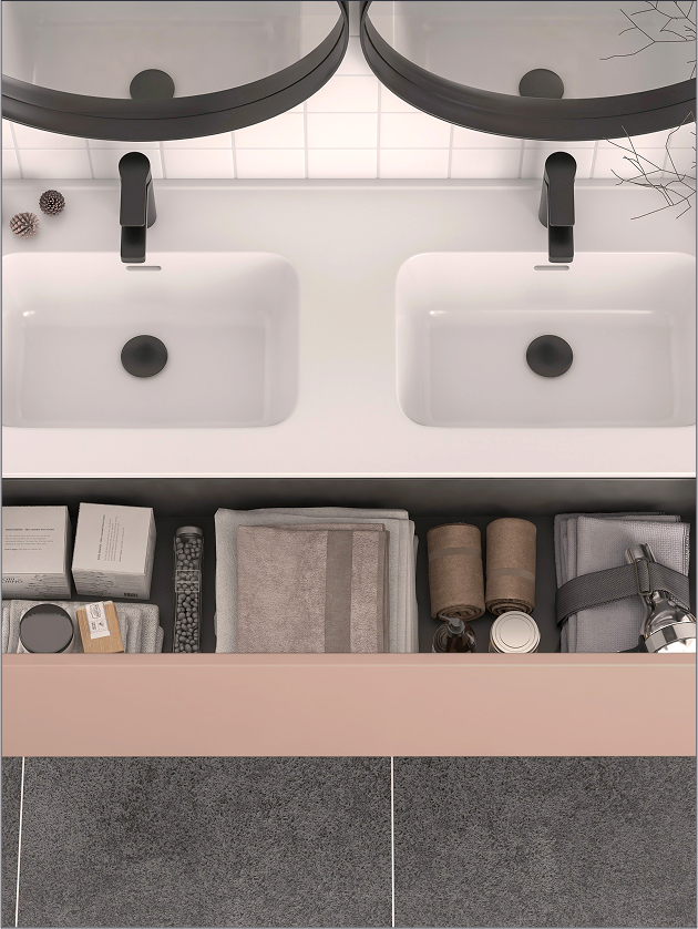 Construido en melamina premium de 19 mm y equipado con herrajes Hettich de última generación, Formentera está pensado para resistir el uso diario manteniendo un acabado impecable. El sistema Soft‑close asegura un cierre progresivo y silencioso de cajones y puertas, mientras que el lavabo cerámico incluido garantiza higiene y una limpieza sencilla.